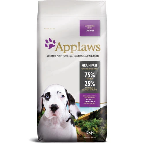 Applaws is a complete dry dog food specially formulated to help aid the physical development of large breed puppies. Grain Free Applaws is made with 75% chicken and contains a variety of fruit and vegetables to give your puppy the best possible start in life.