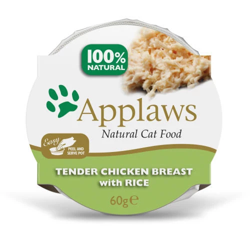 Applaws Natural Chicken with Rice in Broth Pot Wet Adult Cat Food contains nothing more than the ingredients listed. Applaws is a completely natural complementary pet food that adult cats love.