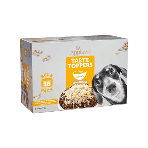 Applaws Taste Toppers Chicken in Broth Wet Dog Food has the full-on flavour to turn dry dog food into a delicious dinner that makes your dog drool with happiness.