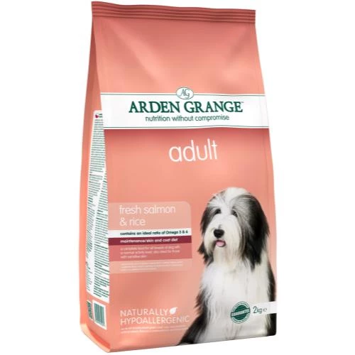 Arden Grange adult fresh salmon & rice is suitable for normally active adult dogs. Salmon provides an excellent quality protein source whilst also being highly digestible and palatable. Salmon is gentle on the digestion and may be of particular benefit to the skin and coat.