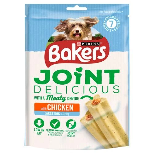 Bakers Joint Delicious are scrummy chicken flavoured dog treats designed to increase mobility and maintain healthy joints. Formulated with Bakers’ unique Joint Complex Tasty Joint Support, a mix of vitamins E & C and glucosamine, just one Joint Delicious a day is the perfect low fat way of looking after your four legged friend’s knees & elbows.