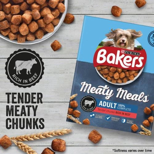 Bakers Meaty Meals Beef Adult Dog Food is crammed full of meaty chunks, is guaranteed 100% complete and balanced – perfect for feeding every day.