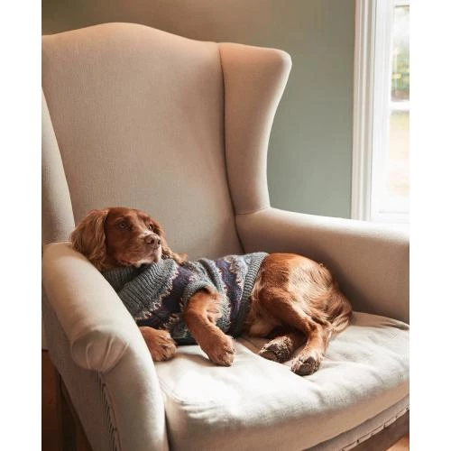 Barbour Case Fair Isle Dog Jumper in Grey boasts a unique design with a roll neck for elite comfort and warmth – great for colder months so that you can dog walk in style and be warm!