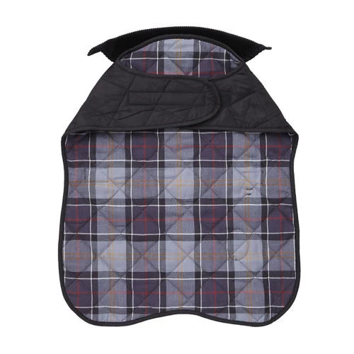 The Barbour Quilted Dog Coat in Black is perfect for keeping your pooch warm during chilly spells. This is Barbour’s signature quilted design – your dog will look the part as well as being kept toasty and warm! The Barbour Quilted Dog Coat buckles around the middle and connects around the neck with a Velcro patch for added security, comfort and ease of movement.