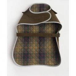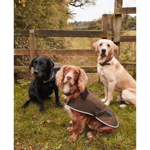 Barbour Waterproof Dog Coat in Olive is perfect for keeping your four legged friends dry on long walks, boasting a reflective trim and tartan lining. Trimmed with a cord collar and a Barbour embossed badge, this dog coat offers a key hole opening for harness access.