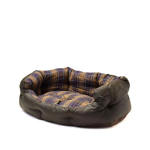 Barbour Wax & Cotton Dog Bed is a stylish slumber bed, made in the UK with a robust waxed cotton outer and a cosy cotton lining in Barbour’s iconic classic tartan.
