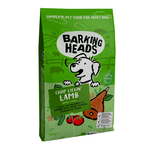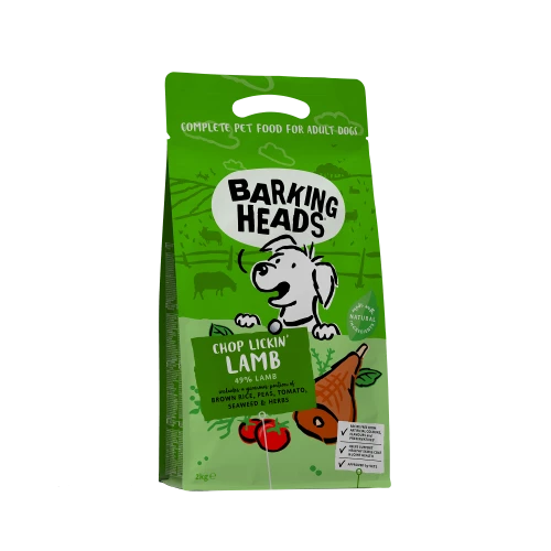 Barking Heads Chop Lickin Lamb Dry Adult Dog Food is made with 100% natural grass-fed lamb for a taste your big dog will love!
