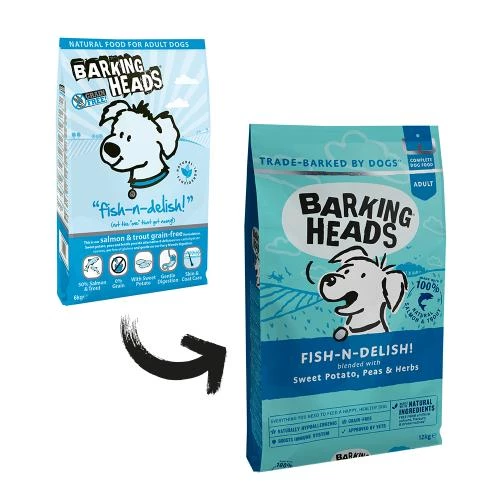 Barking Heads Fish n Delish Grain Free Adult Dog Food is made with 100% natural cod, haddock & pollock for a taste your dog will love!