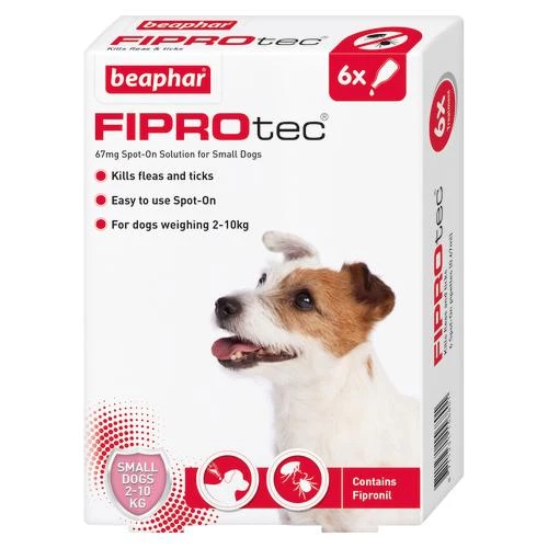 Beaphar FIPROtec Spot-On Solution Dogs kills fleas and ticks on small dogs and continues to kill fleas for up to 5 weeks and ticks for up to 4 weeks.Â
