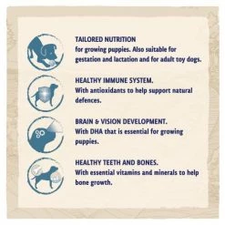 Feeding instructions: Feed puppies under 3 months of age 3 to 4 daily feedings of moistened food. After 3 months of age, gradually reduce moistening and feed 3 times per day. From 6 to 12 months, provide 2 daily feedings. Feed them according to the recommendation table and avoid overfeeding to maintain a lean body condition during growth. Each puppy is different; depending on his activity level and body condition, food amount may need to be adjusted. Feeding during gestation and lactation: During the last 3 to 4 weeks of pregnancy and while nursing, food allowances should be increased 1.5 to 2 fold maintenance levels. After weaning, the mother’s food should be adjusted to maintain her at an ideal body condition. Clean, fresh water should be available at all times. To monitor your dog’s health, consult a veterinary surgeon regularly. Introduce PURINA BETA gradually over 7 days.