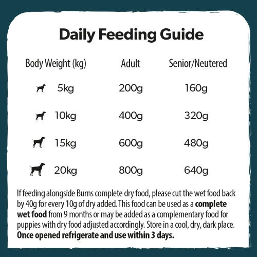 Containing 4 delicious varieties, Burns Wet Food takes inspiration from a home cooked diet and each variety is made with a handful of high quality ingredients. The range is made and produced in Wales and developed by Veterinary Surgeon, John Burns.