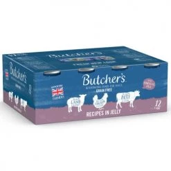 Butchers Meaty Recipes in Jelly Wet Dog Food contains 3 mouthwateringly delicious flavours that are bursting with all the essential nutrients that dogs need to be at their best. What’s more, each recipe is packed with quality ingredients sourced from British and Irish farms, heaps of vitamin-packed vegetables and delicious beneficial herbs and oils. These recipes are grain free.