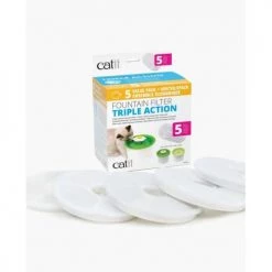 The Catit Triple Action filter removes magnesium and calcium from tap water These minerals can accumulate in your pet’s lower urinary tract and lead to urinary tract diseases, which is a common health issue for cats. Additionally, this high performance filter removes chlorine odours and bacteria, and retains stray hairs, sediment and debris.