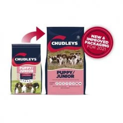 Chudleys Puppy & Junior Dog Food is especially made to nutritionally reinforce the first stages of your puppies life from 2 weeks until adulthood.This recipe provides moderate energy levels for steady growth, important nutrients for muscle and bone development, prebiotics for digestive health, Omega3 fatty acids for neural and learning capacity and immune support during this crucial time.