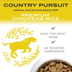 Country Pursuit Premium Chicken & Rice Dry Adult Dog Food offers complete nutritional support for adult dogs. Developed, trialled, and tested by working dog experts. Made with carefully sourced and selected ingredients, our special formula is suitable for working and active dogs who need an optimum diet to support their outdoor lifestyle.