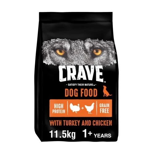 Crave Turkey & Chicken Dry Adult Dog Food is inspired by a dog’s natural diet. The high-protein, grain-free dog food recipe is made with 100% Natural Turkey & Chicken and is designed to help support strong and healthy muscles for your dog.