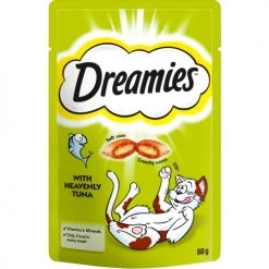 DREAMIES cat treats are packed full of things cats love. Share moments with your feline friend with these dual-texture treats with an enticingly crunchy outside and a soft inside. DREAMIES with Tasty Chicken contains vitamins and minerals, at just 2 calories per treat. So go on, give the bag a shake and watch your cat come running!