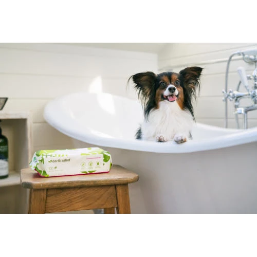 Earth Rated Lavender Scented Compostable Dog Wipes are certified compostable, plant-based wipes that are gentle enough for daily use, perfect for washing your dog’s face, paw pads, foot, and bums without leaving wet residue or mucky smells!