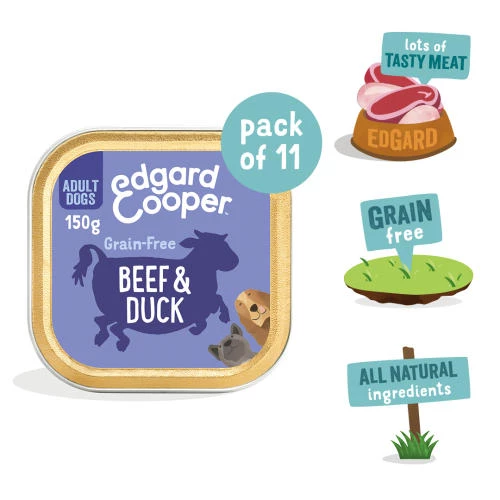 Edgard & Cooper Beef & Duck Grain Free Wet Adult Dog Food is a delicious recipe made using the finest deboned Beef & Duck with absolutely no fillers, ensuring only the best protein is used.