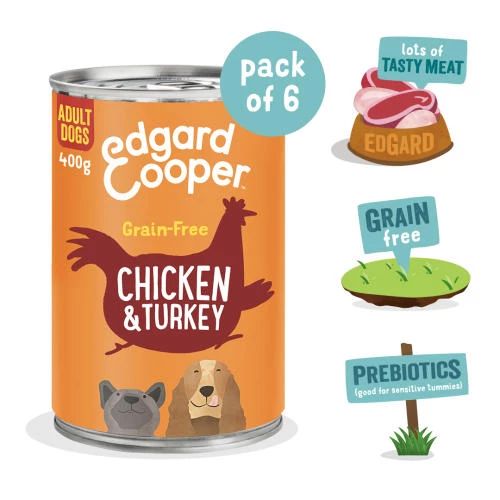 Edgard & Cooper Chicken & Turkey Grain Free Tins Wet Adult Dog Food is a delicious recipe made using the finest deboned Chicken & Turkey with absolutely no fillers, ensuring only the best protein is used.