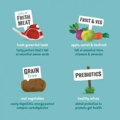 This kibble is the world’s first to be made direct from fresh lamb with no lamb meal or dried lamb, so it’s packed with the very best protein. This means it is highly nutritious and easily digestible. Every pack bursts with tasty veggies, fruit and botanicals, giving me all the vitamins, minerals and antioxidants I need to keep me healthy nose to tail.