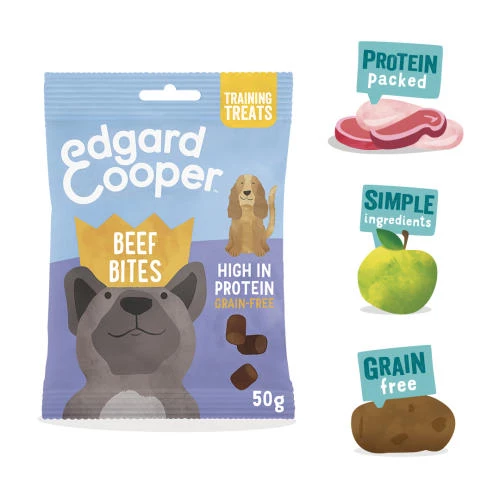 Edgard & Cooper Good Boy Beef Bites Dog Treats are delicious bite sized training treats that are full of protein-rich beef and healthy fruit for a taste your pooch will love!