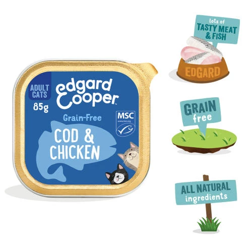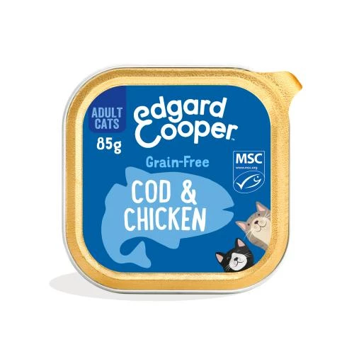 Edgard & Cooper Grain Free Cod & Chicken Wet Adult Cat Food is a naturally tasty cat food, made using lots of fresh chicken and MSC-certified cod.