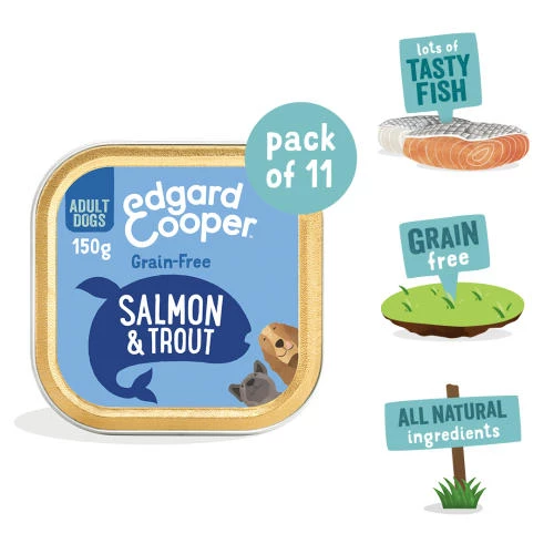 Edgard & Cooper Salmon & Trout Grain Free Wet Adult Dog Food is a delicious recipe made using the finest deboned Salmon & Trout with absolutely no fillers, ensuring only the best protein is used.