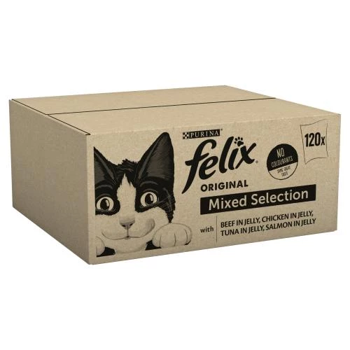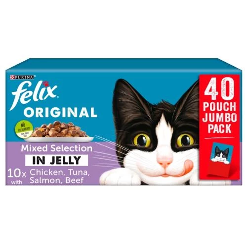Individually foil sealed to keep in the taste cats love, each pouch is a perfect balance of delicious flavour & convenience; just snip it open, pour out the succulent meaty chunks smothered in jelly, & let your cat become a Felix cat! With a mouth watering selection of flavours like Beef, Chicken, Tuna, and Salmon & Trout, Felix cats are spoiled for choice!