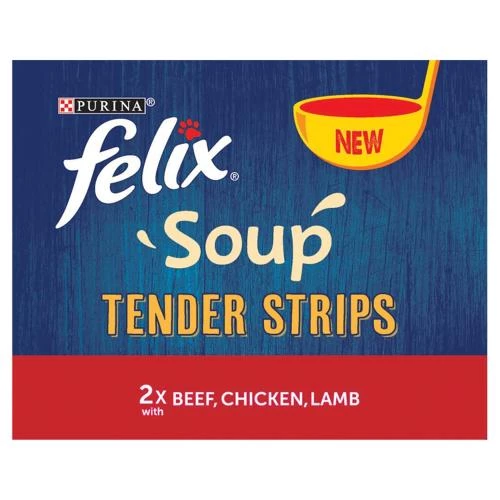 Felix Soup Tender Strips Farm Selection Cat Food are a scrumptious selection of complimentary recipes, a great way to make mealtimes more exciting!