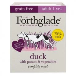 Forthglade Grain Free Duck with Potatoes & Vegetables is suitable for adult dogs and is grain free. Free from artificial colours, flavours, preservatives, soya, wheat, gluten & dairy products. Forthglade is a highly digestible food containing proteins, vitamins, minerals and carbohydrates to maintain your dog’s healthy lifestyle. The formulation contains Glucosamine and Chondroitin which promotes suppleness and healthy joints, and seaweed which provides your dog with important trace elements.