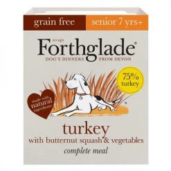 Forthglade Complete Grain Free Turkey & Veg Senior Dog Food is suitable for senior canines 7+ and is grain free. Made with no artificial colours, flavours, preservatives, soya, wheat, gluten or daily products such as eggs. Forthglade is a highly digestible food containing proteins, vitamins, minerals and carbohydrates to maintain your older dog’s healthy lifestyle. The formulation contains Glucosamine and Chondroitin which promotes suppleness and healthy joints, and seaweed which provides your dog with important trace elements.