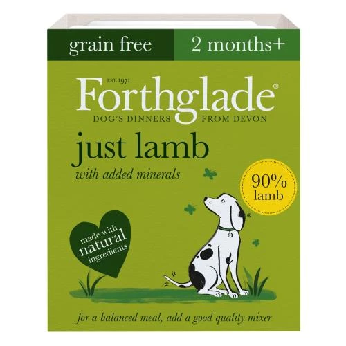 Forthglade Just Lamb is a wholesome, highly nutritious complementary pet food for your adult dog or puppy from 3 months old. A wheat gluten, soya, dairy, egg, and additive free dog food, Just Lamb can be fed with a good quality mixer, allowing you to feed your four legged friend on an completely natural diet.