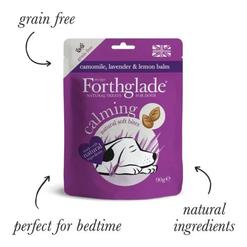 Forthglade Natural Calming Soft Bite Dog Treat have been crafted with our bespoke blend of camomile, lemon balm and lavender – perfect for helping your dog relax.