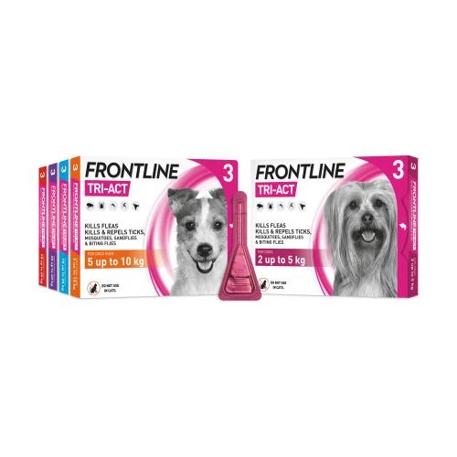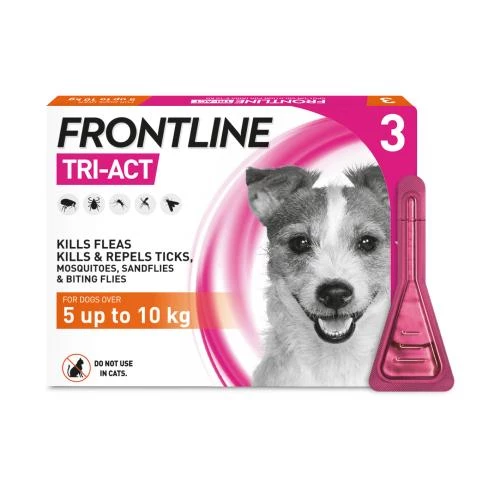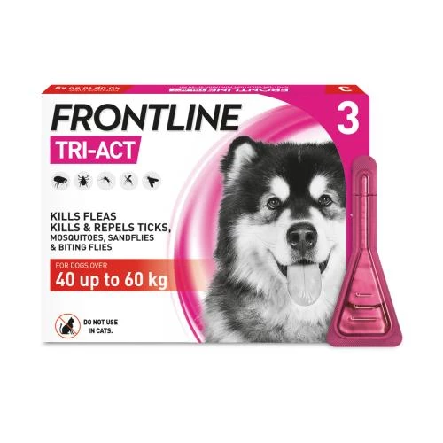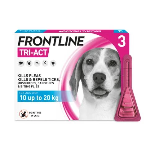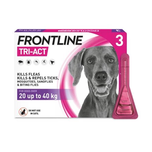 Frontline Tri-Act has a unique formula that kills faster and repels more disease-carrying parasites than the next leading competitor brand. Delivered in pipette form and used every 4 weeks, it is the next level in parasite control for dogs, providing long-lasting protection against flying insects as well as fleas and ticks whilst also preventing home flea infestations.
