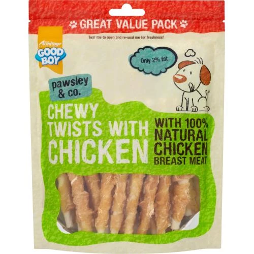 Good Boy Chewy Twisters with Real Chicken are made from only the finest quality ingredients that have been carefully selected to provide you with a superb, healthy treat your dog will love.
