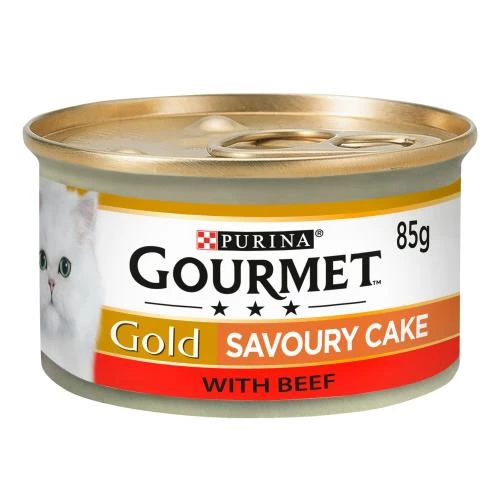 Gourmet Gold Savoury Cake will certainly delight your sophisticated cats senses. Combining succulent chopped beef pieces seasoned in a hint of sauce with an irresistible cake texture. Made with a selection of high quality ingredients, this ensures your cat will have a dining experience they adore. Provides complete and balanced nutrition for adult cats (1 – 7 years). Not suitable for kittens or senior cats.