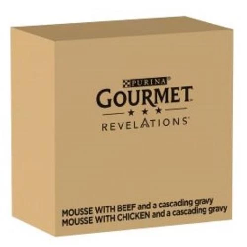 Gourmet Revelations Beef & Chicken in Gravy Wet Cat Food are delicious and 100% complete meals that are perfectly shaped for an exquisite serving experience!