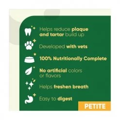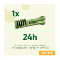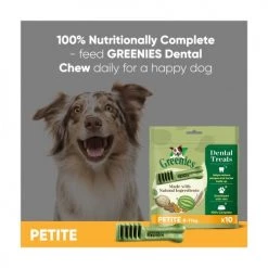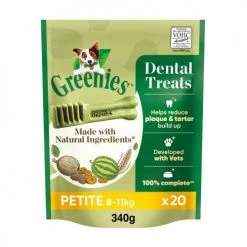 Greenies Petite Dental Dog Treats are a delicious treat that provide superior oral care for small dogs. Knowing that oral care is important to your dogs health, Greenies are proven to clean your dogs’ teeth by combating plaque and tartar build up, freshening breath and maintaining healthier teeth and gums. Formulated with added vitamins and minerals, they are low in far and nutritionally complete for adult dogs.
