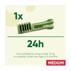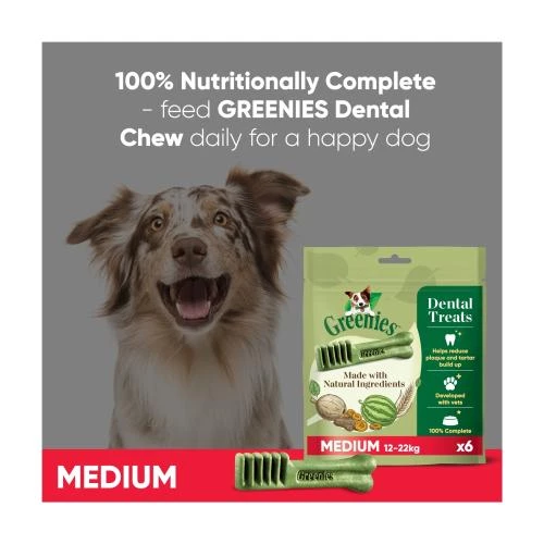 Greenies Regular Dental Dog Treats are a delicious treat that provide superior oral care for medium dogs. Knowing that oral care is important to your dogs health, Greenies are proven to clean your dogs’ teeth by combating plaque and tartar build up, freshening breath and maintaining healthier teeth and gums. Formulated with added vitamins and minerals, they are low in far and nutritionally complete for adult dogs.