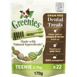 Greenies Teenie Dental Dog Treats are a delicious treat that provide superior oral care for extra small dogs. Knowing that oral care is important to your dogs health, Greenies are proven to clean your dogs’ teeth by combating plaque and tartar build up, freshening breath and maintaining healthier teeth and gums. Formulated with added vitamins and minerals, they are low in far and nutritionally complete for adult dogs.