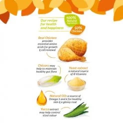 Chicken (50%), yeast extract, cassava extract, minerals, sunflower oil, chicory extract (50 mg/kg), yucca extract (50 mg/kg), glucosamine (11 mg/kg), chondroitin (3 mg/kg)