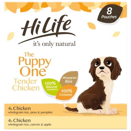 HiLife Its Only Natural Complete Puppy Wet Adult Dog Food contains 2 delicious recipes that have been carefully prepared with 100% natural ingredients to help your puppy stay healthy & happy. Our recipes contain quality ingredients, including wholegrain brown rice and a variety of nutritious, tasty fruit and vegetables.