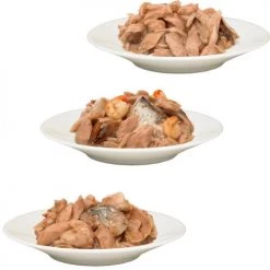 Ingredients (Mackerel & Tuna with Salmon in sauce): Mackerel (26%), tuna loin (26%), salmon (8%)