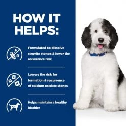 Bladder stones are collections of mineral crystals that combine together in the urinary tract. They can cause discomfort and lead to more serious problems that require the care of a veterinarian. Hill’s nutritionists & veterinarians developed Prescription Diet c/d Multicare clinical nutrition specially formulated to support a dog’s urinary health and reduce the risk of struvite and calcium oxalate stones. This dry food is made with chicken and has an irresistible taste that your dog will love.