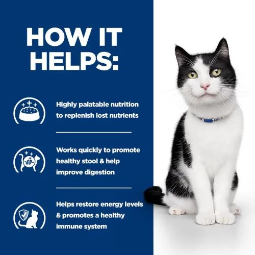 Recommended for: Acute gastroenteritis (diarrhoea or vomiting). Constipation (motility impaired). Exocrine pancreatic insufficiency (EPI). Gastritis (acute or chronic). Gastrointestinal disorders in kittens. Oesophageal disorders. Pancreatitis. Recovery from gastrointestinal surgery. Growth. Neoplasia, most forms