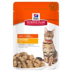 HILL’S SCIENCE PLAN Adult chicken & turkey cat food tender chunks in gravy. It has the perfect balance of taste and nutrition and is specially formulated to fuel the energy needs of cats during the prime of their life. Made with high quality, easy-to-digest ingredients.Essential taurine for heart health & balanced minerals to support kidneys & bladderHigh-quality protein for lean musclesVitamin E, Omega-3s & -6s for beautiful skin & fur.