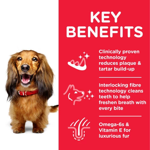 Hills Science Plan Canine Oral Care Chicken Adult Dry Dog Food is clinically proven to reduce plaque and tartar. With antioxidants and advanced oral care technology.