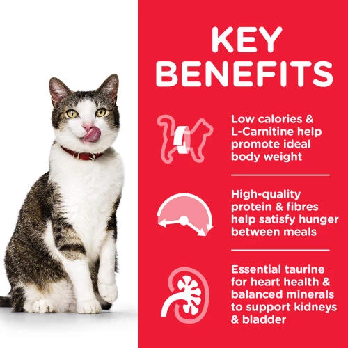 HILL’S SCIENCE PLAN Light Adult dry cat food is precise nutrition for less active adult cats requiring a low calorie food to maintain a healthy weight & lifestyle.Low calories & L-Carnitine help promote ideal body weightHigh-quality protein & natural fibers help satisfy hunger between mealsOmega-6s & Vitamin E for beautiful skin & fur.