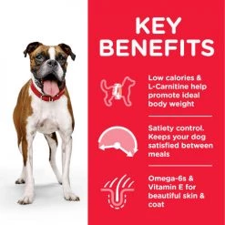 It is recommended for adult dogs that require fewer who are moderately active, from 1 year old until 7 years old (i.e. dogs that are less active, neutered or otherwise prone to being overweight).